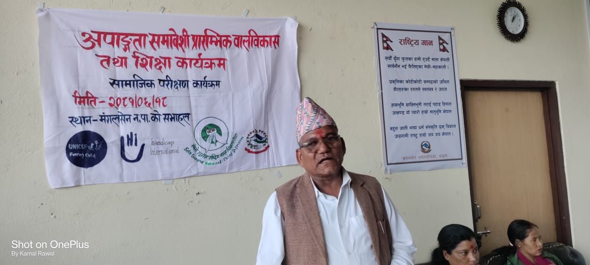 मंगलसेन नगरपालिकामा संचालित अपाङ्गता समावेशी प्रारम्भिक बालबिकास तथा शिक्षा कार्यक्रमको सामाजिक परीक्षण कार्यक्रम सम्पन्न भएको छ । ह्यान्डिक्याप इन्टरनेशनल फेडरेशन र युुनिसेफको सहयोग तथा सेतो गुरास राष्ट्रिय बालविकास सेवा मार्फत मगलसेन नगरपालिकामा संचालित प्रारम्भिक बाल शिक्षा र विकासमा अपाङ्गता भएका बालबालिकाको समावेशीकरणलाई बलियो बनाउने उद्देश्यका संचालित कार्यक्रमको समिक्षा सहित सामाजिक परीक्षण कार्यक्रम सम्पन्न भएको छ । सन २०२३ मे १ देखि नगरका १४ वटै वडाका बालबिकास केन्द्रमा भएका कार्यको समिक्षा गरिएको हो ।