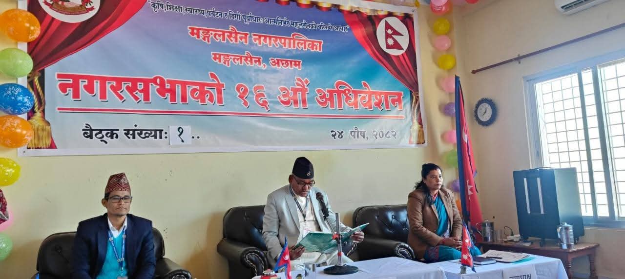 अछाम: मङ्गलसैन नगरपालिकाको नगरसभाको १६ औँ अधिवेशन बिहीबार सम्पन्न भएको छ। हिउँदे अधिवेशनका रूपमा सञ्चालन गरिएको उक्त नगरसभाले विभिन्न महत्वपूर्ण विधेयकहरू सर्वसम्मत रूपमा पारित गरेको छ।